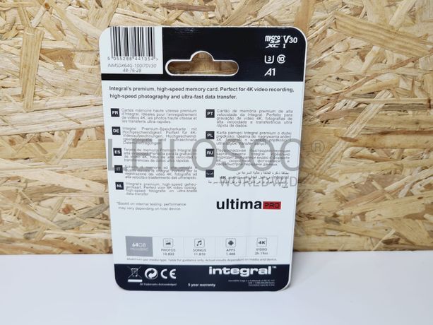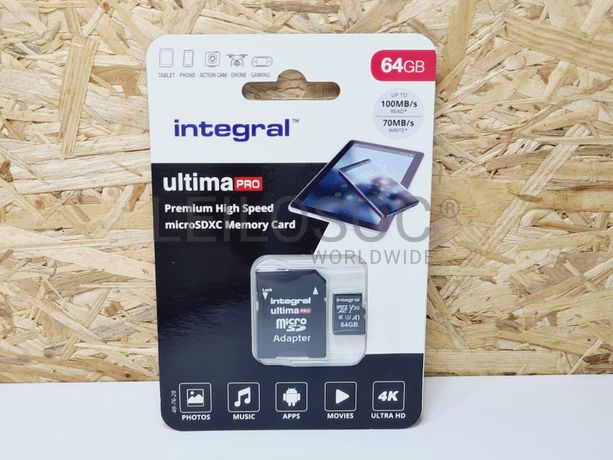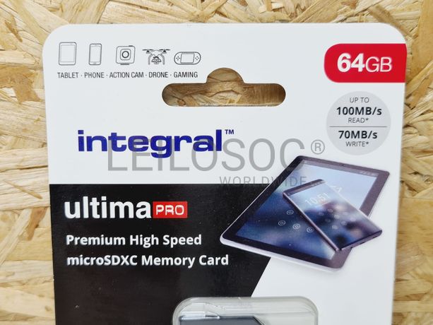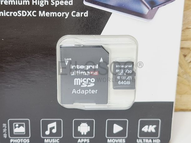 Cartão de Memória premium Integral UltimaPro Micro SDXC I V30 A1 de 64GB, Classe 10, 4K, com adaptador.