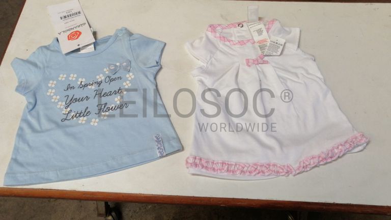 Lote de roupa diversa de bebé até 3 meses, da marca Girandola, com aproximadamente 5.000 peças, composto por calças, polos, malhas, gorros, t shirts, sweats, babygrows.