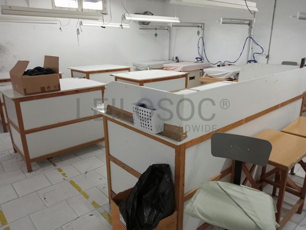 Lote de rolos de malha · Lote de cones de linhas · Mesa de corte · Mesas de revista e embalamento · Mesas auxiliares · Cadeiras grandes · Ventoinhas · Carinhos de transporte de vestuário · Relógio de ponto · Extintores · Compressor · Escadote · Secador · Desumidificadores · Relógio de ponto antigo · Caixas de pinos · Ferros · Caixa de amostras com peças defeituosas · Balanças eletrónicas · Esmeril · Cacifos · Tabuleiros · Berberquim · Aquecedores · Frigorífico