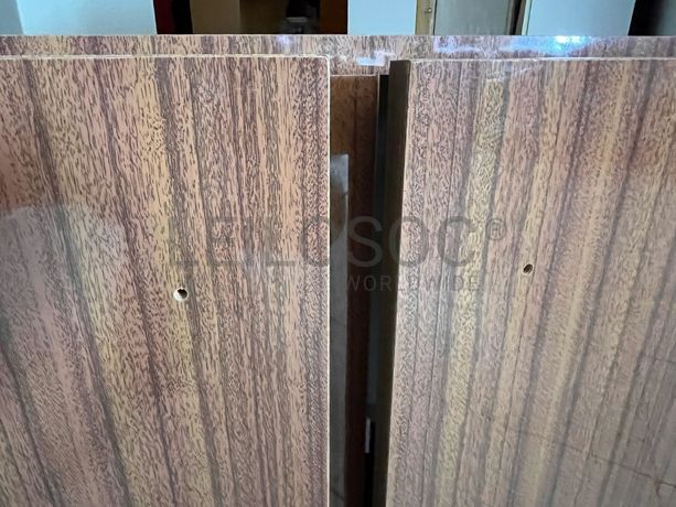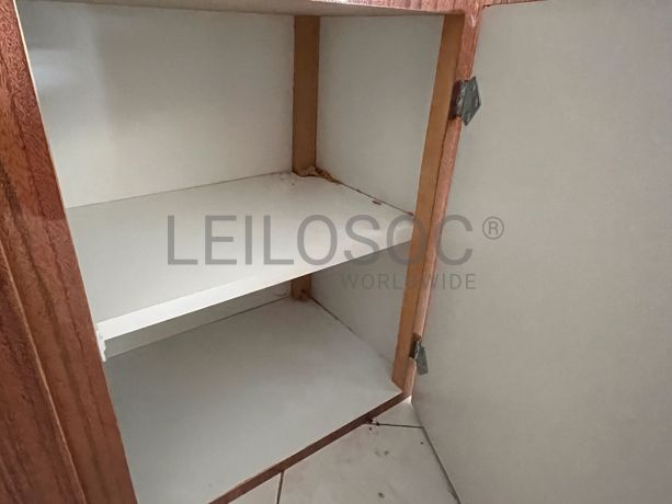 Móvel de madeira clara, com três portas, sem puxadores (potencial para restauro).