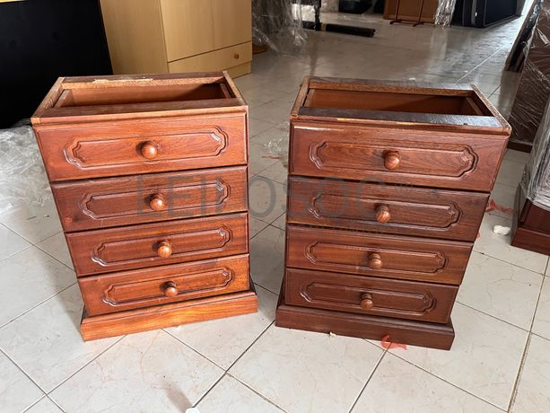 - 2 Mesinhas de cabeceira de madeira castanha, sem tampo