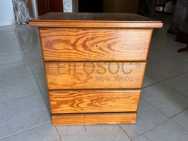 - Mesinha de cabeceira de madeira clara (sem puxadores, com potencial para restauro)