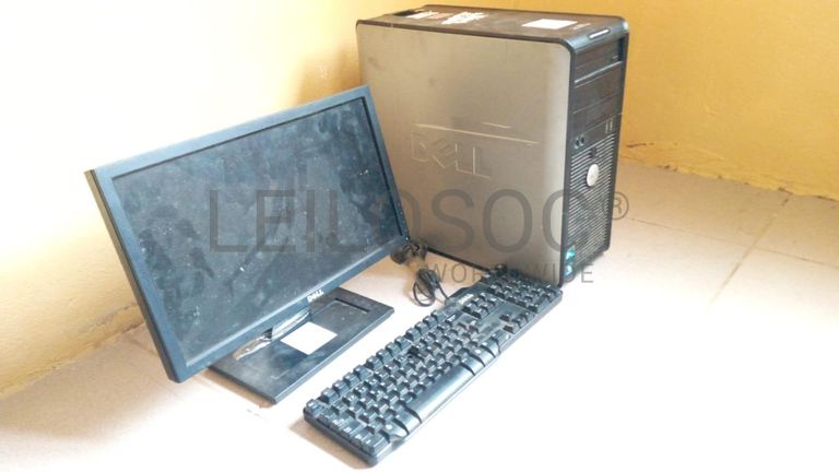 Um desktop de marca Dell Optiplex 380 Core Duo, 320Gb HDD, 2Gb de RAM (Bom), um monitor (Avariado) e um teclado Dell.