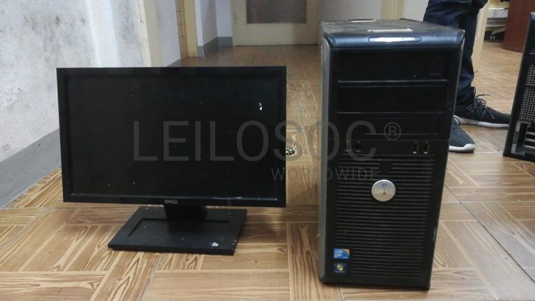 Um monitor Dell, um desktop de marca Dell Optiplex 360 Intel Core 2, 500GB HDD, 512GB ram e um teclado Dell.