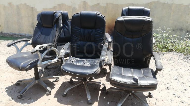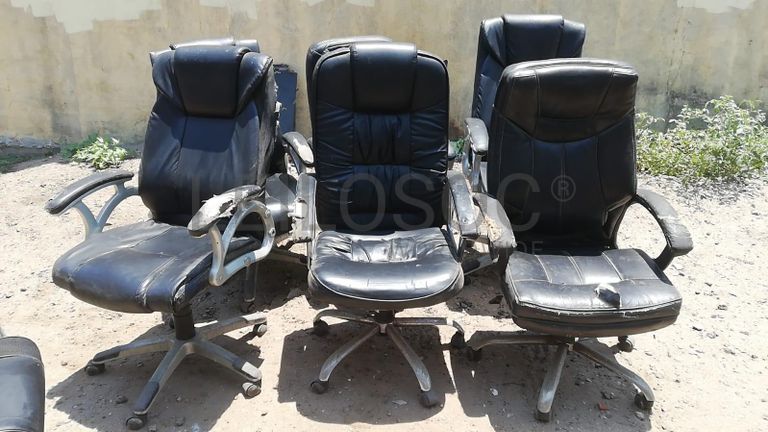 Seis cadeiras giratórias.