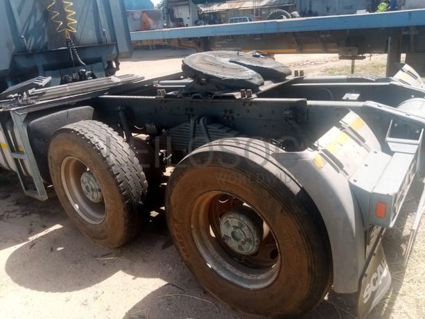 Um caminhão de marca SCANIA, modelo R580 , cor branco, com a chapa de matrícula AFX-013-MP, ano de fabrico 2008, estado operacional com problema elétrico "eletrodo" ( as mudanças não entram).