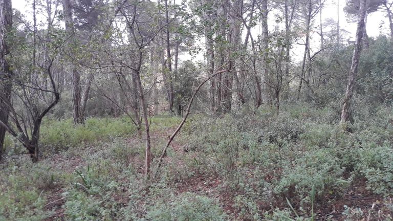 Terreno com pinheiros grossos e arbustos · Área Total de 800 m²