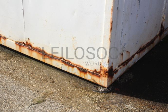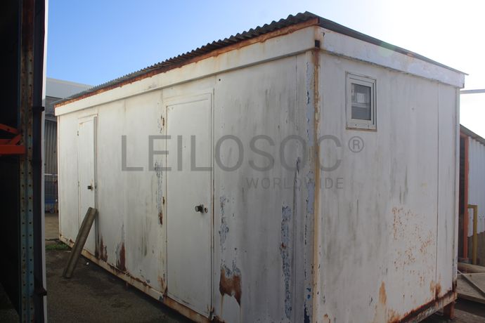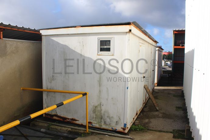 Contentor com 2 divisórias e prateleiras no interior.
