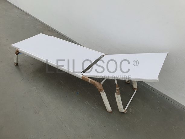 Cadeira espreguiçadeira, com tela, armação metálica
