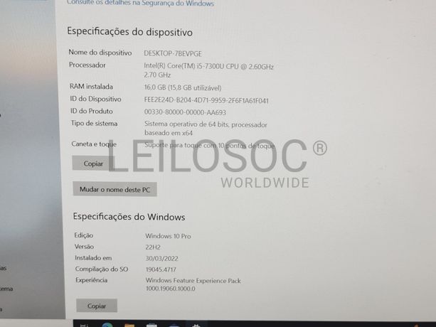 Portátil Fujitsu U727, com processador Intel Core i5-7300, com memória RAM de 16GB, armazenamento de 256GB SSD, ecrã de 12.5'' FHD Touchscreen e sistema operativo Windows 10 Pro.