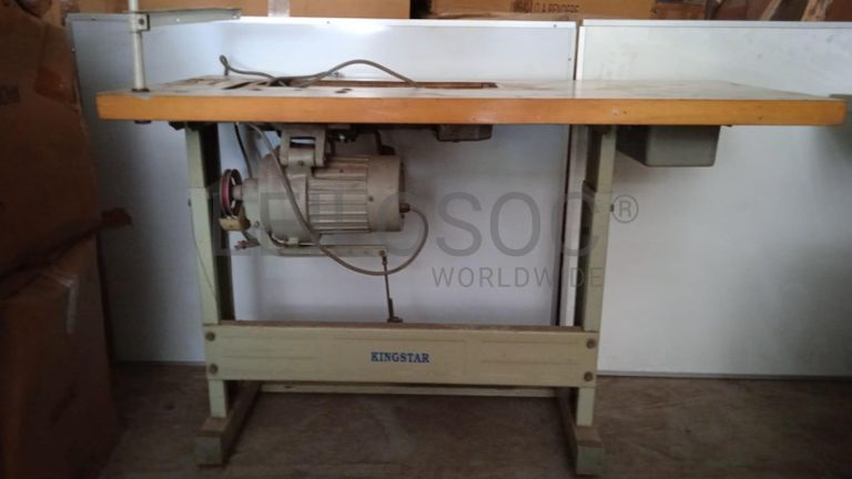 Uma base de mesa, de máquinas de costura sem cabeça.
