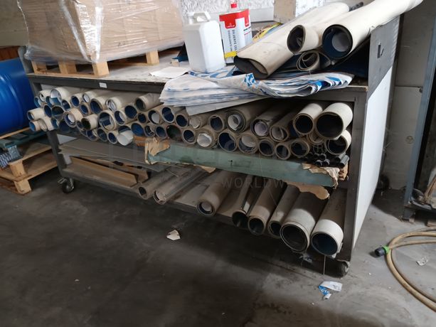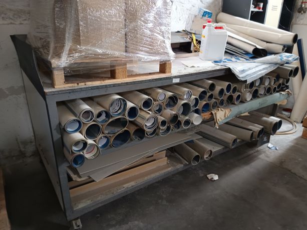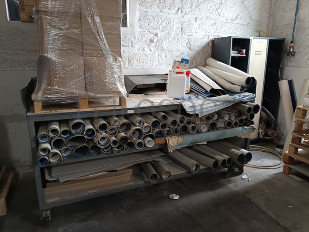 Equipamento diverso constituído por: bancada de trabalho com rodas, cacifo (incompleto)