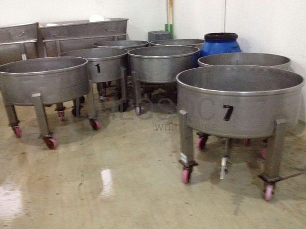 o Cubas de armazenamento e candura · Bomba de lóbulos · Panelas · Carrinho de cestos de escorrimento · Misturador de fruta · Mexedor ·