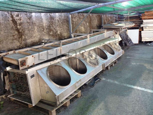 o Torre de Condensados com Depósito · Bombas de Recirculação de Água · Doseador de Hipoclorito · Depósito de Desferrização · Tubagens · Laminadora · Tapete · Painés Istotérmicos · Tinas · Bancada de Escolha de Fruta · Espectómetro · Microprocessador · Depósito para Condensados · Depósito para Gasóleo.