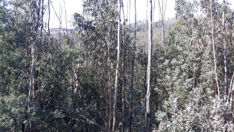 - Terreno de 1.170 m² · Com rentabilidade florestal · Tem eucaliptos para corte · Sito em Lugar de Trapa, Ceira · GPS: 40.165, -8.3675 · Com frente para a estrada e caminho em terra batida na parte de baixo a confinar com o terreno · Declive acentuado · Acesso A12, N17 e EM568.