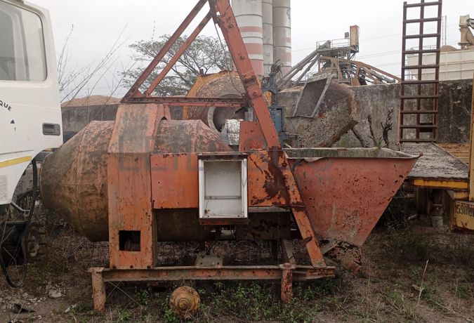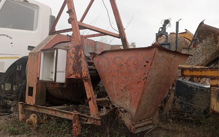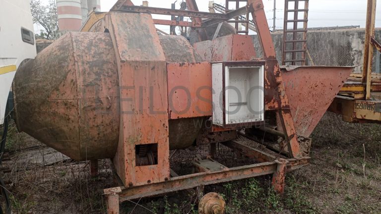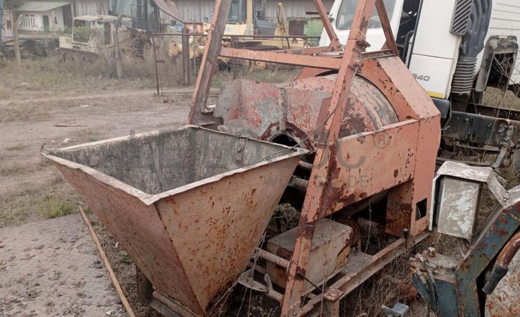 Uma betoneira com motor elétrico.