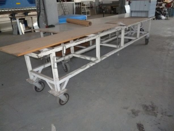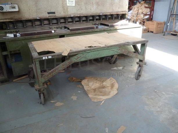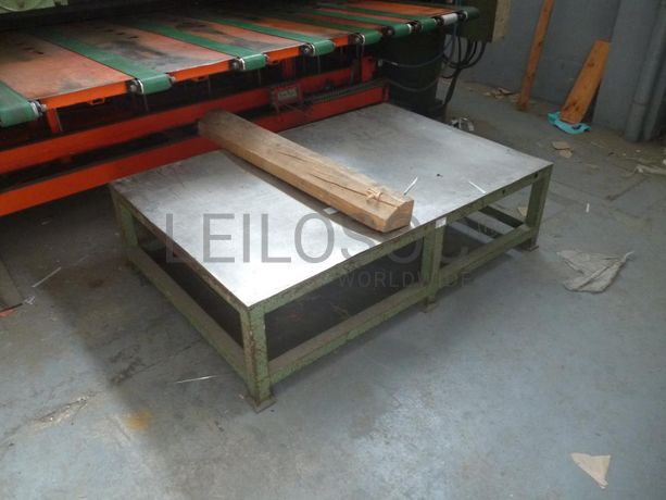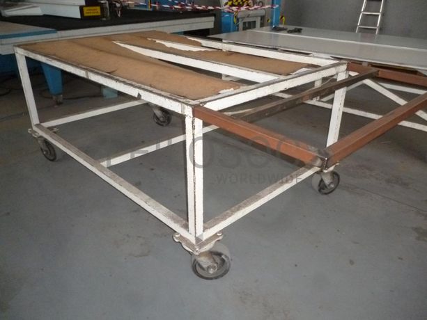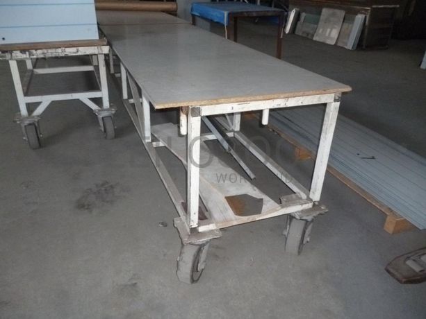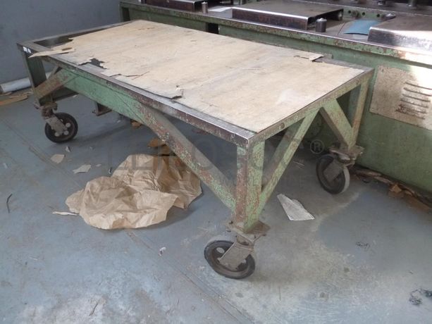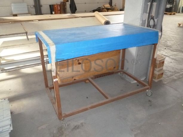 - Mesa de trabalho em estrutura metálica, com rodas