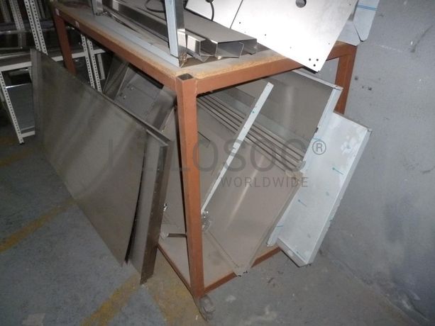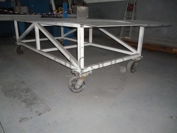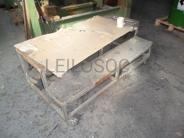 - Mesa de apoio em estrutura metálica, com rodízios