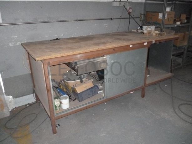 - Banco de trabalho em estrutura metálica com rodízios