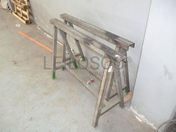 - Mesa de apoio de estrutura metálica, com rodízios