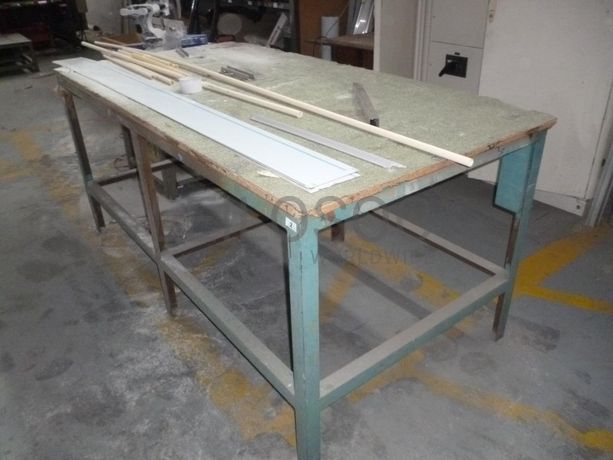 - Mesa de trabalho em estrutura metálica, com rodízios