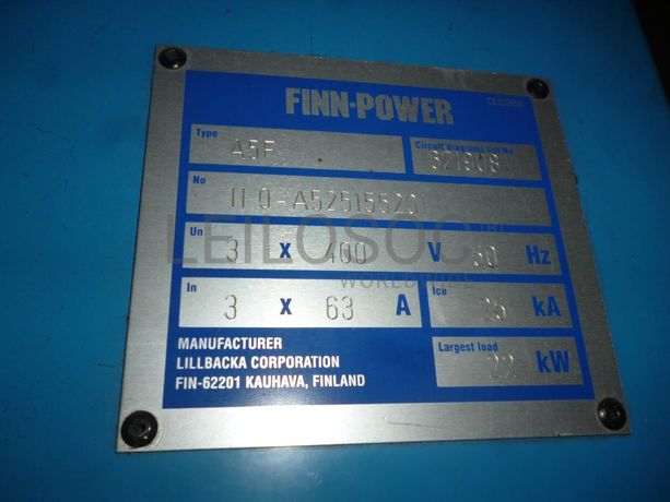 - Máquina de corte de chapa por arrombamento FINN-Power, máquina A5F, série 110-A525155201, do ano 2001