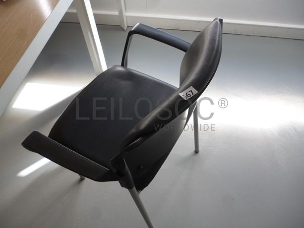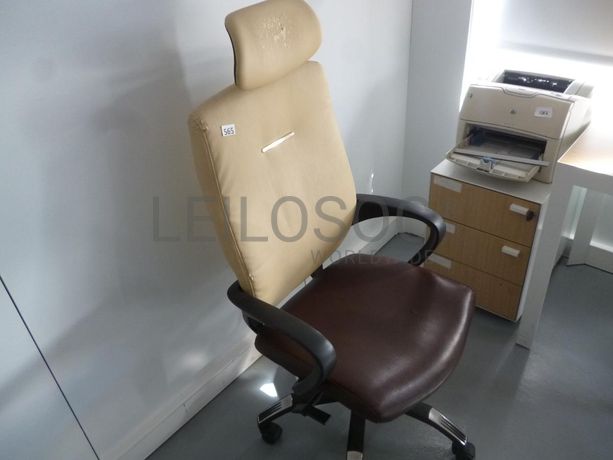- Cadeira com rodízios, com costa alta, em pele castanha
