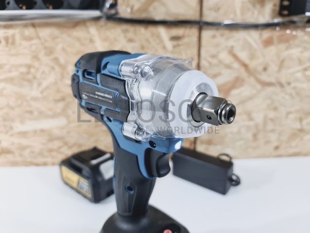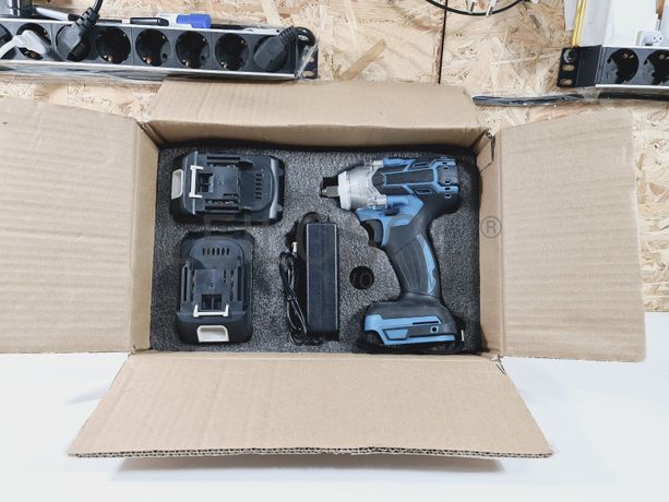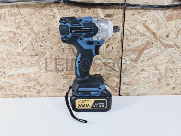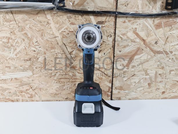 Aparafusadora de impacto de gama profissional, sem fios, de corpo robusto metálico, de duas velocidades, com carregador e duas baterias de alta capacidade, com compatibilidade para as máquinas Makita.