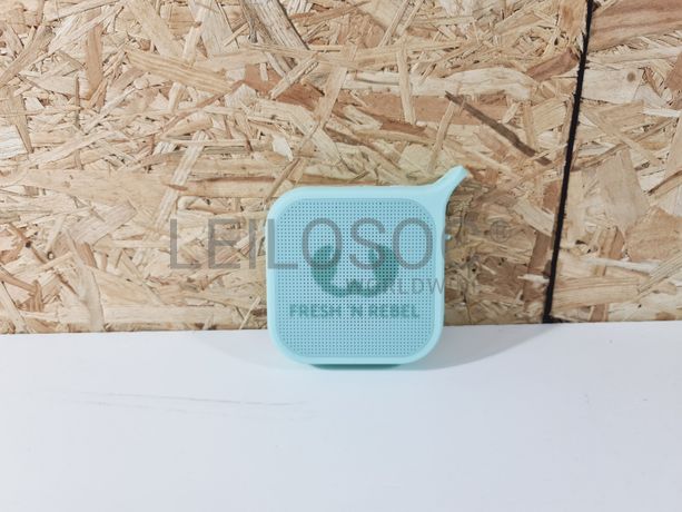Coluna bluetooth portátil Rockbox Pebble da marca Fresh 'N Rebel, cor de menta, com acessórios e cabos originais.