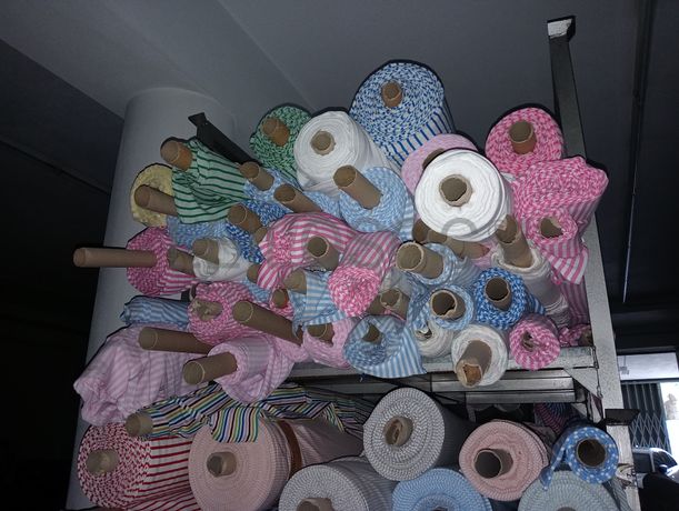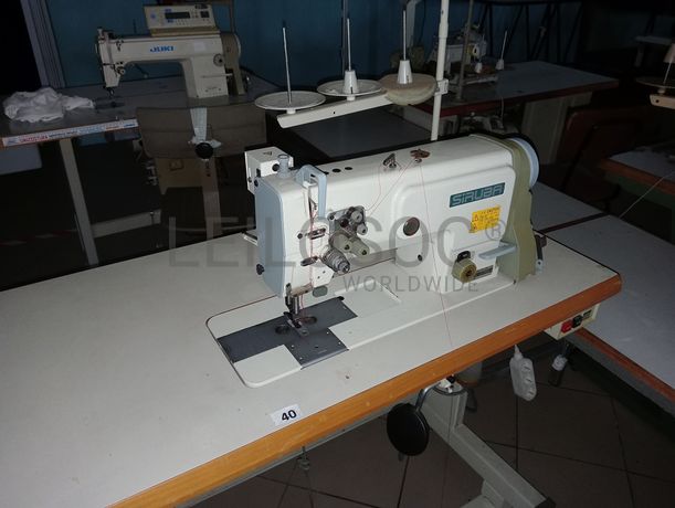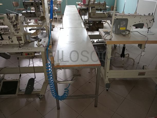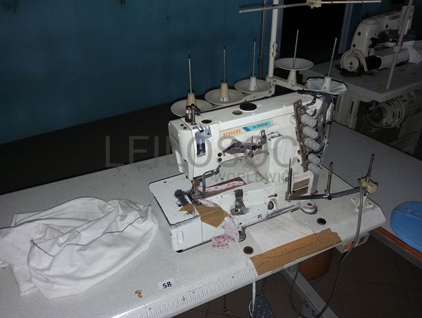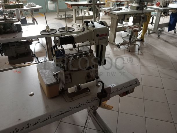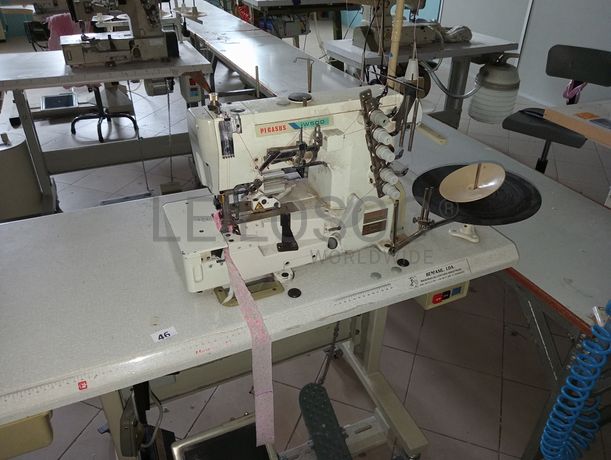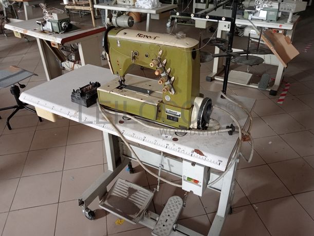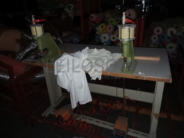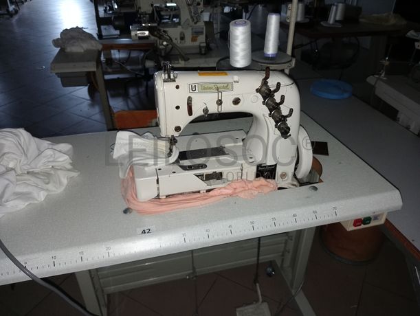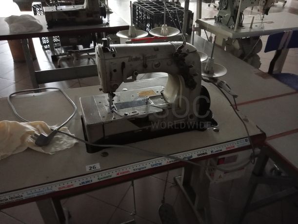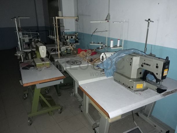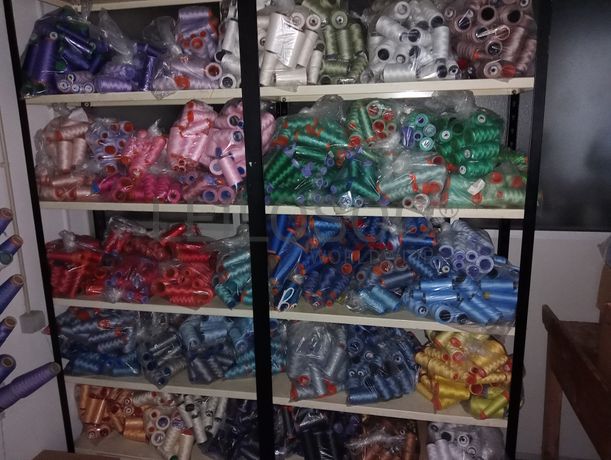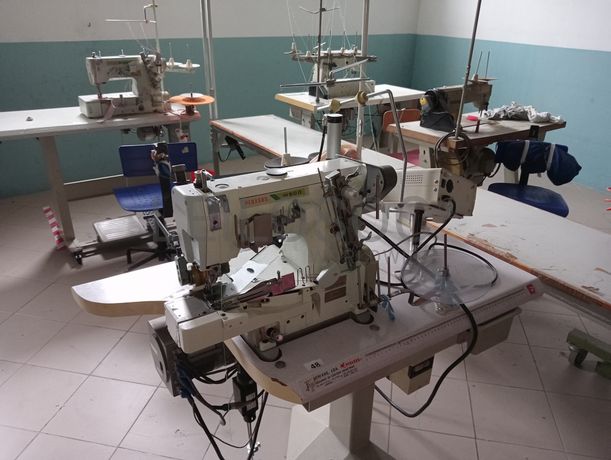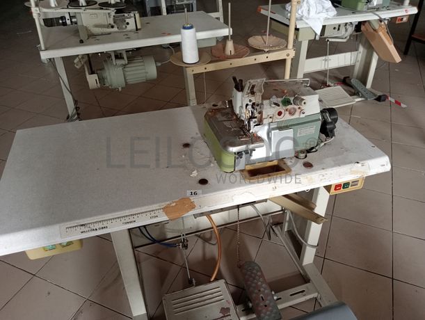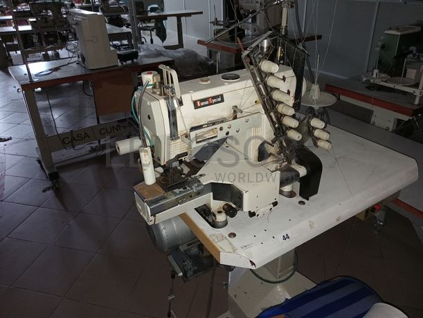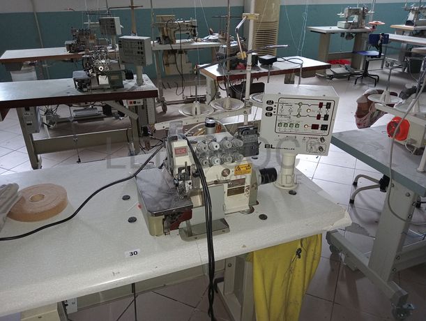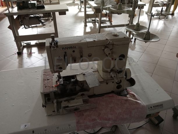 Máquinas de recobrimento · Máquinas de corte cose · Máquinas de ponto corrido · Máquina de fechar elástico · Máquina de pregar botões · Máquina de bainhas · Máquinas de picueta · Máquina de cortar cloretes · Máquinas de meter elástico · Máquinas de mosquear · Máquina de meter cloretes · Transportadores eletrificados · Bobinadores · Máquinas de costura · Máquina de colar transferes · Máquina de pregar molas · Máquina de corte automático · Carros de estender · Serra de fita · Máquina de cortar elástico