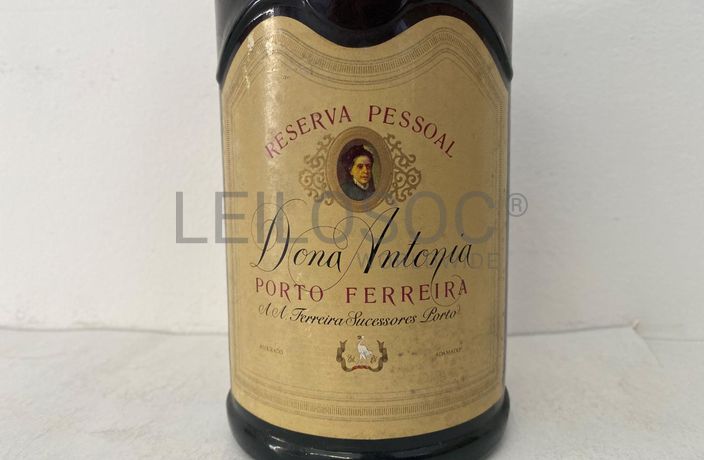 Garrafa de Vinho do Porto 'Dona Antonia' - Porto Ferreira Reserva Pessoal. Alourado, Adamado. Produzido em Portugal e engarrafado por A. A. Ferreira Sucessores Porto, Portugal. Contém 75 cl e 20% volume. Venda Condicionada.