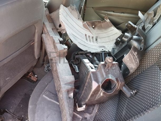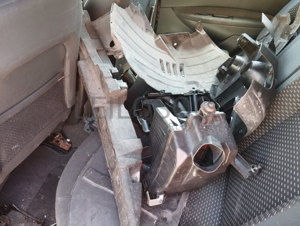 Danos visíveis: não funciona, não tem chave, não tem motor, peças soltas, interior em mau estado, pintura em mau estado, vários riscos e amolgadelas.