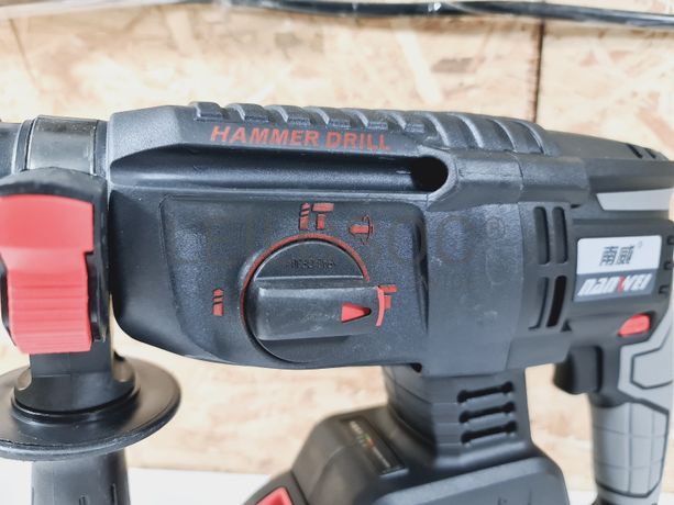Martelo / Torna elétrico com três funções reguláveis através de botão, pega rotativa até 360º, mandril SDS, botão de segurança e limitador de perfuração. Inclui duas baterias recarregáveis de grande capacidade, compatíveis com vários equipamentos.
