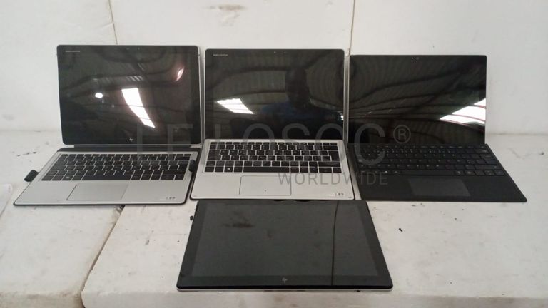 Quatro Portáteis, três de marca HP, Core 7, modelo Elite X2, um sem teclado e um laptop da Microsoft