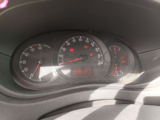 Danos visíveis: aviso verificar antipoluição, luz do motor acesa, alguns riscos e amolgadelas, farolim traseiro partido, banco do condutor danificado, puxador interior da porta partido