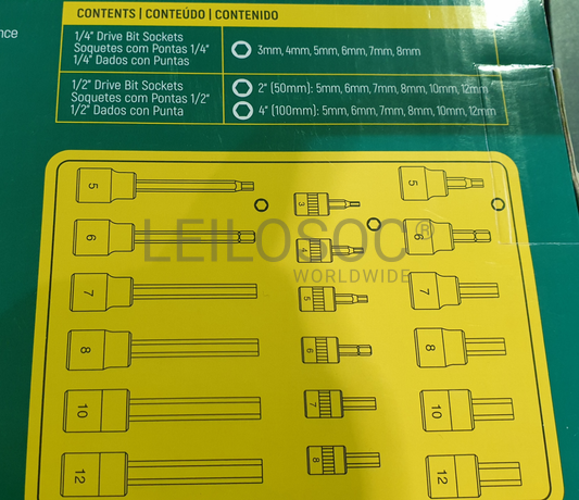 CONJUNTO DE 18 PEÇAS - CONJUNTO CHAVES DE CAIXA SEXTAVADAS 1/4" E 1/2"