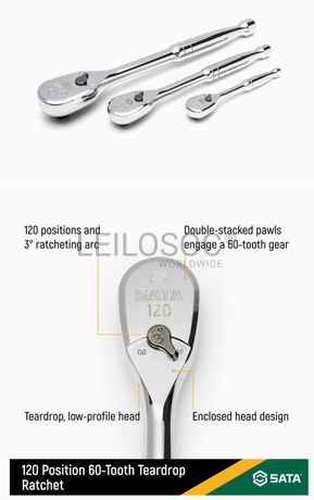 • Concebido com 120 posições, proporcionando um arco de rotação de 3° para que possa rodar fixadores em espaços mais apertados