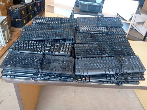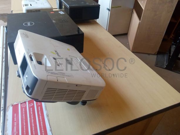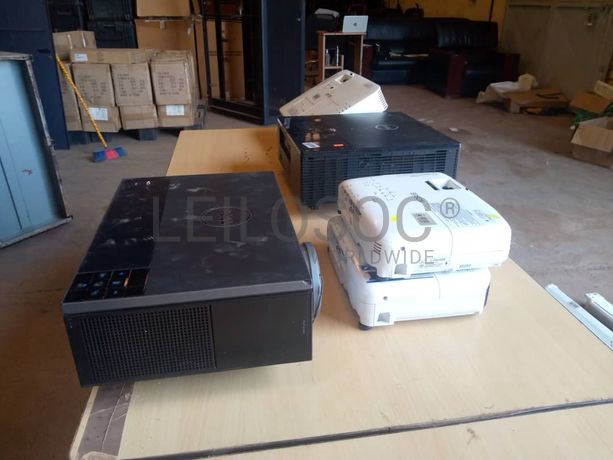 It features various monitors including HP and Dell, a large number of keyboards, as well as high-quality projectors from Dell and Epson, complemented by nine projector screens.