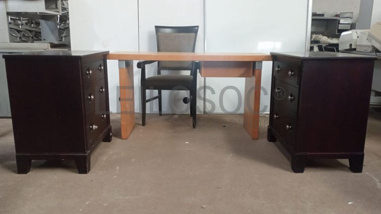 Uma escrivaninha, uma cadeira e duas cabeceiras