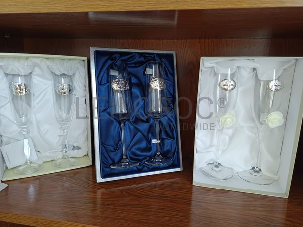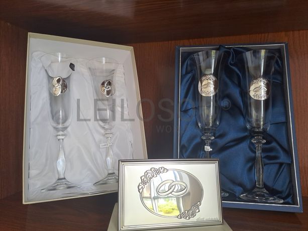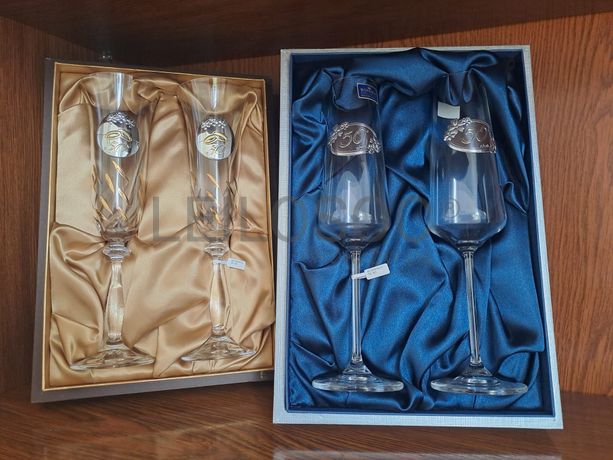 - 8 Conjuntos de copos decorativos de 25 e 50 anos de casamento;