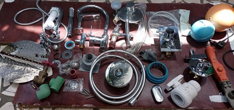 Três batentes de porta, Uma válvula de paragem, Um regulador de gás, Três tubos flexíveis, Quatro mangueiras de chuveiro, Dois chuveiros, sendo um de mão, Um sifao P (P-Trap), Máquina de soldar tubos, Quatro torneiras, Uma válvula de bronze, Um misturador de chuveiro, Quatro conexões plásticas, Duas bóias plásticas-.