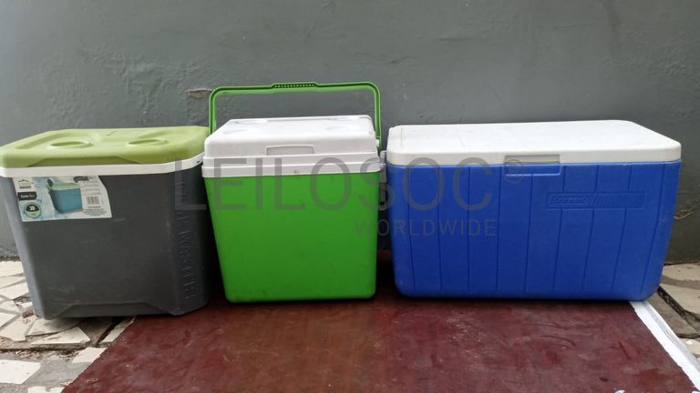 Três colmans, sendo um de trinta litros, outro de vinte e sete litros e outro.....