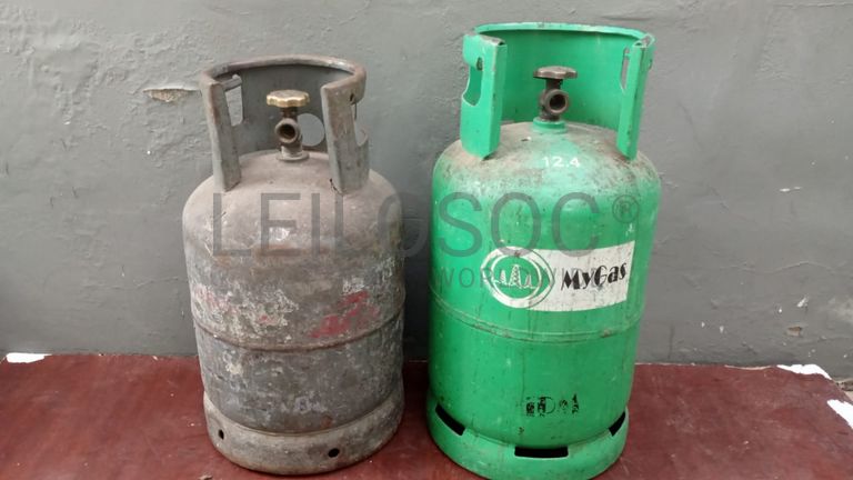 Duas botijas de gás, sendo uma de 11 kg e outra de 9 kg.