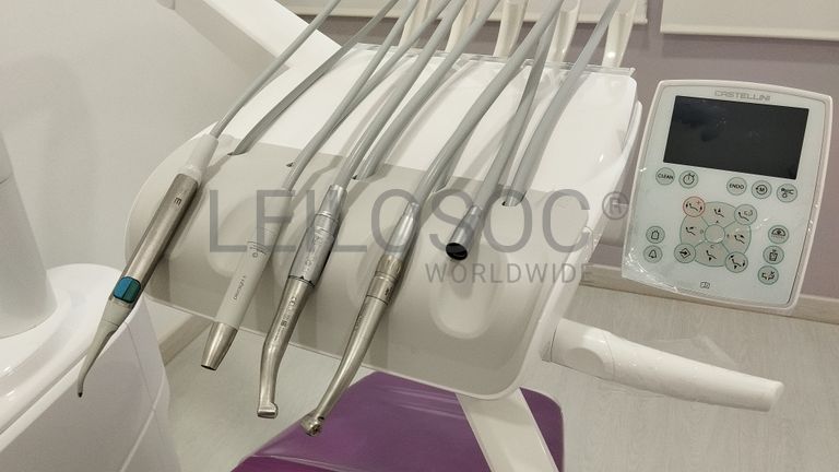 - Turbina da marca NSK, contrangulo, destartarizador, seringa de água e ar;