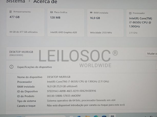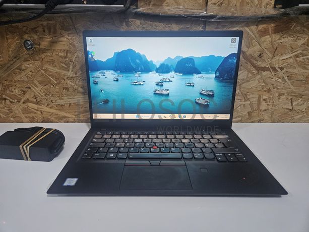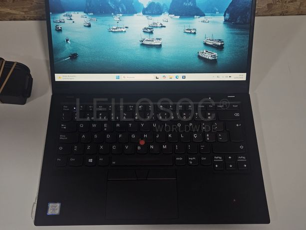 Computador portátil de marca Lenovo, modelo THINKPAD Carbon G7, processador Intel i7-8565U, com 16GB de memória RAM, disco de armazenamento de 512GB M.2. NVMe SSD, Windows 11 Pro, com carregador Lenovo original incluído.