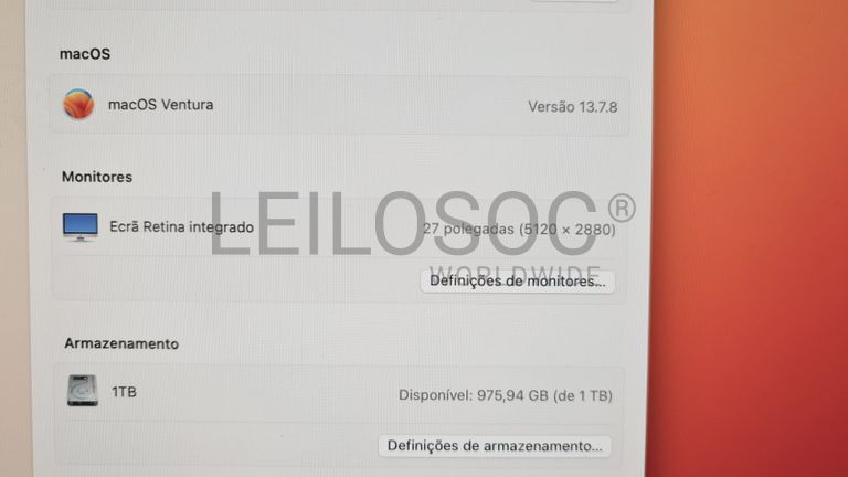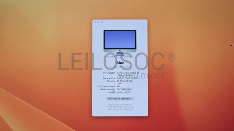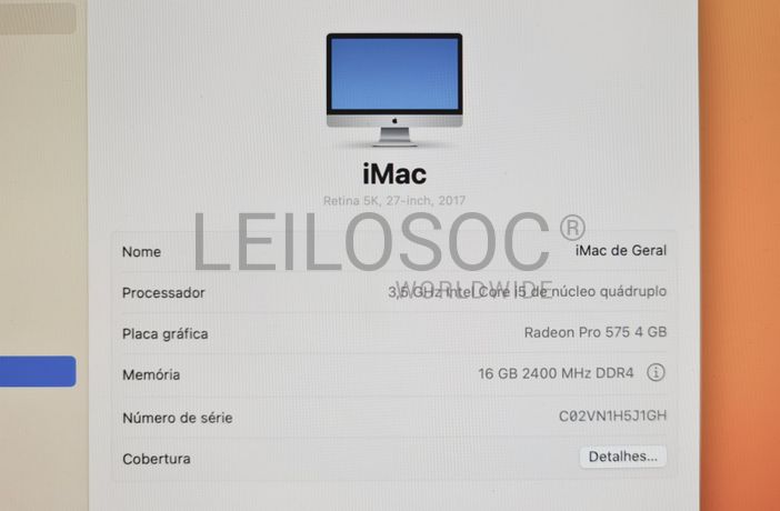 Computador Apple iMac A1419, All In One, com processador Intel Core i5, memória RAM de 16GB, disco HDD de 1TB com ecrã retina 5K de 27" integrado, placa gráfica Radeon Pro 575 de 4GB e sistema operativo