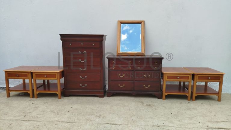 Duas cômodas, quatro mesinhas de cabeceira e um espelho