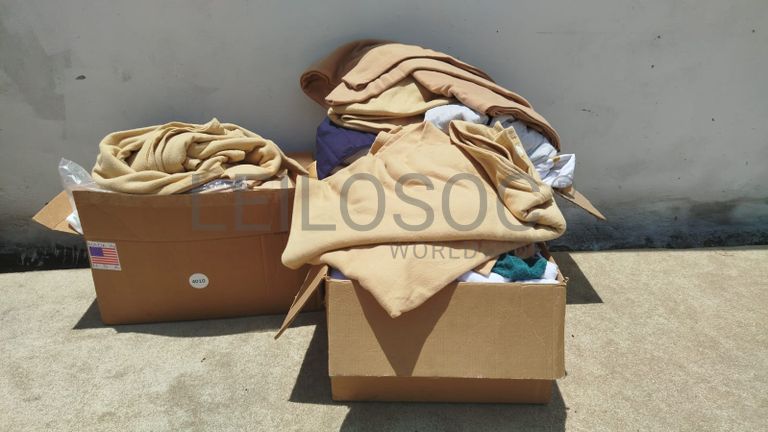 Cinco almofadas, nove mantas, dezoito protetores de cama, vinte e cinco fronhas, dois panos de mesa, cento e cinquenta cabides