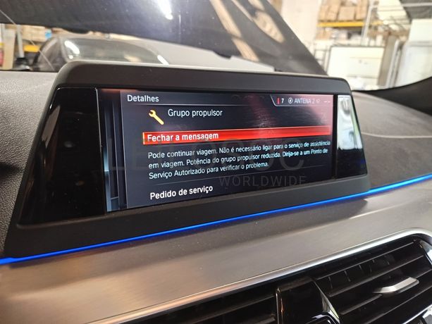 Danos visíveis: avaria na bateria elétrica, luzes de avisos acesas e alguns riscos.