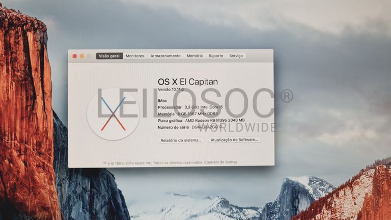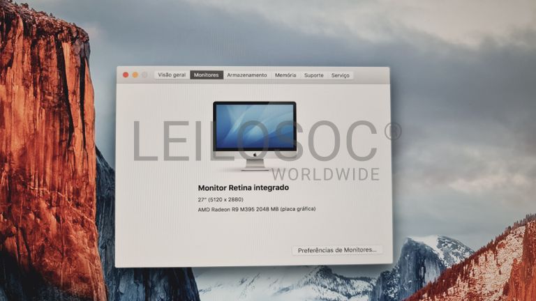 Computador Apple iMac A1419, All In One, com processador Intel Core i5, memória RAM de 8GB, disco de 256GB SSD, ecrã retina de 27" integrado e sistema operativo macOS X El Capitan.